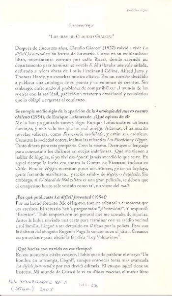 Las iras de Claudio Giaconi [artículo] Francisco Véjar.