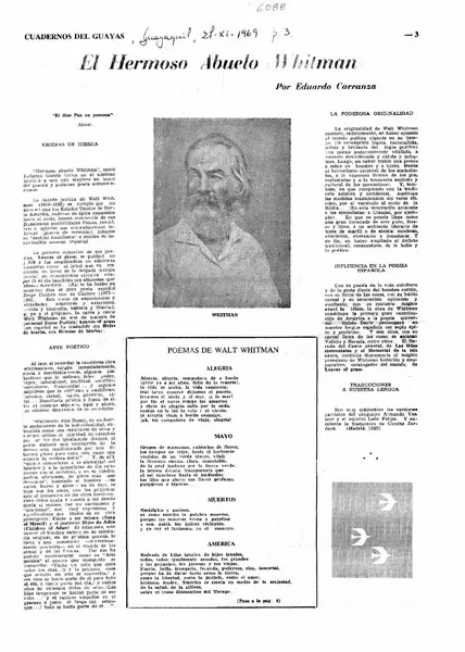 El hermoso abuelo Whitman [artículo] Eduardo Carranza.