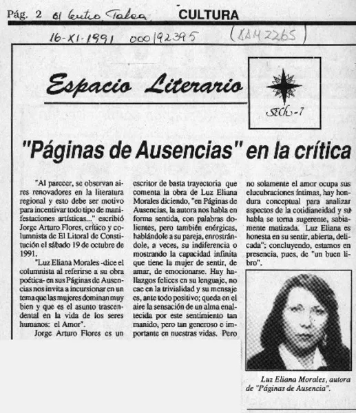 "Páginas de ausencia" en la crítica [artículo]. retr.