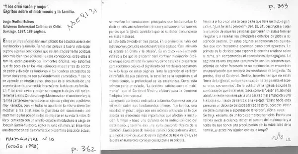 "Y los creó varón y mujer" [artículo] J. G.