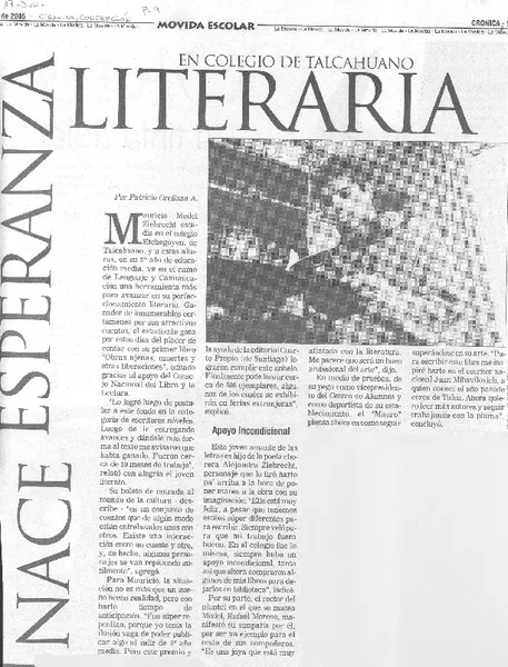 En colegio de Talcahuano nace esperanza literaria [artículo] Patricio Orellana A