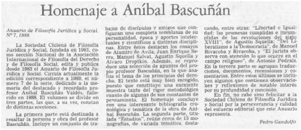 Homenaje a Aníbal Bascuñán [artículo] Pedro Gandolfo.