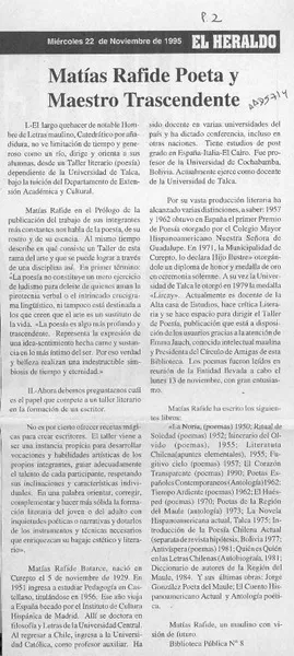 Matías rafide poeta y maestro trascendente [artículo].