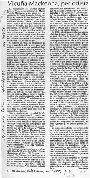 Vicuña Mackenna, periodista [artículo] Tito Castillo.