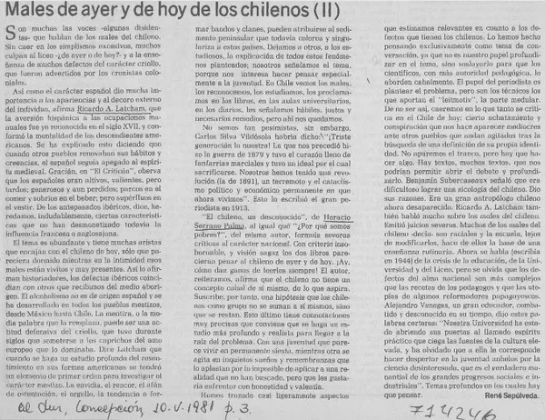 Males de ayer y de hoy de los chilenos (II) [artículo] René Sepúlveda...