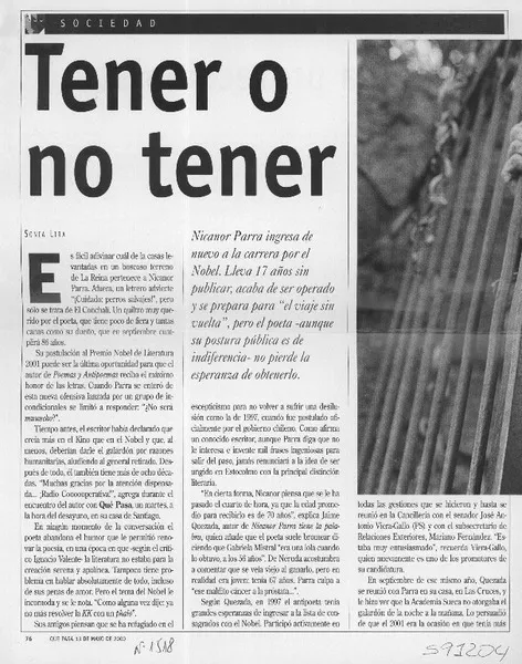 Tener o no tener [artículo] Sonia Lira. retr.