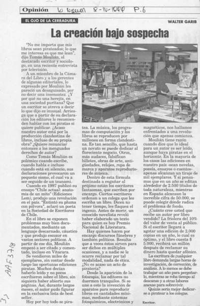 La creación bajo sospecha [artículo] Walter Garib.
