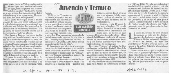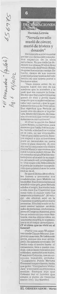 "Neruda no sólo murió de cáncer, murió de tristeza y desazón". [artíc...