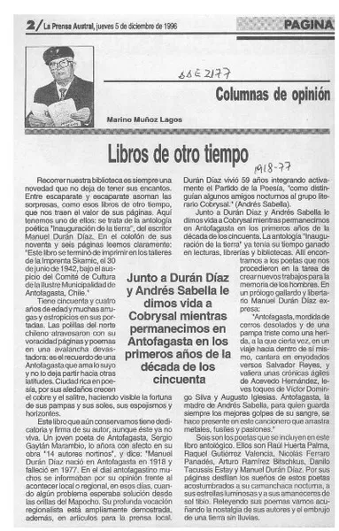 Libros de otro tiempo [artículo] Marino Muñoz Lagos.
