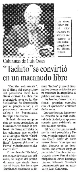 Tachito" se convirtió en un macanudo libro. [artículo]. retr.