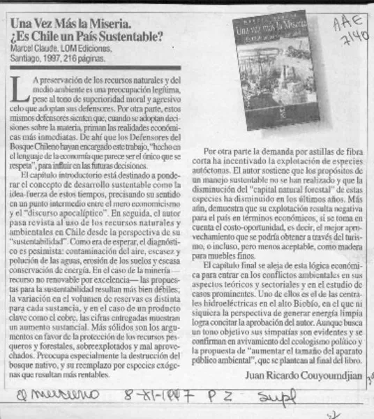 Una vez más la miseria, es Chile un país sustentable? [artículo] Juan...