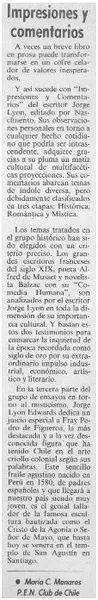 Impresiones y comentarios [artículo] María C. Menares.