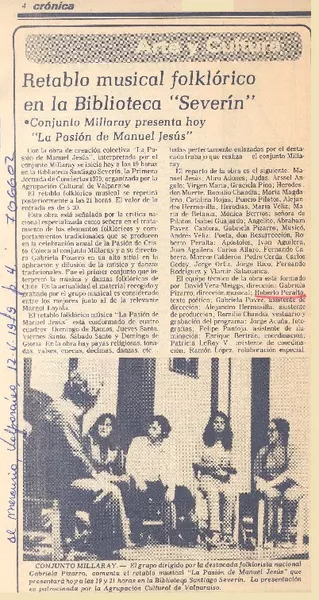 Retablo musical folklórico en la Biblioteca "Severín". [artículo]. fo...