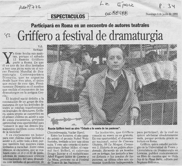 Griffero a festival de dramaturgia [artículo] Y. Z. retr.