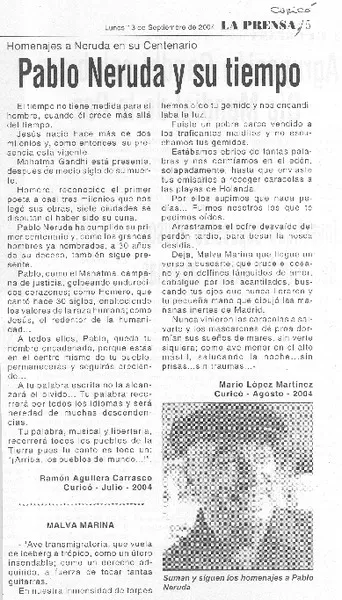 Pablo Neruda y su tiempo [artículo] Mario López Martínez.
