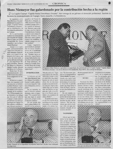 Hans Niemeyer fue galardonado por la contribución hecha a la región [artículo].