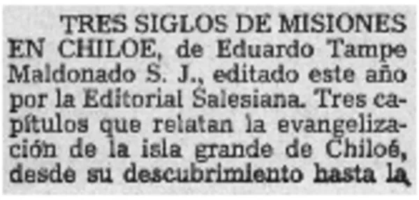 Tres siglos de misiones en Chiloé. [artículo]