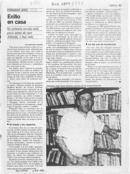 Exilio en casa [artículo] Leonardo Cáceres. retr.