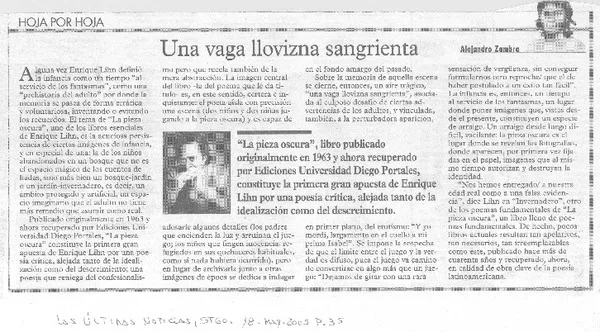 Una vaga llovizna sangrienta [artículo] Alejandro Zambra.