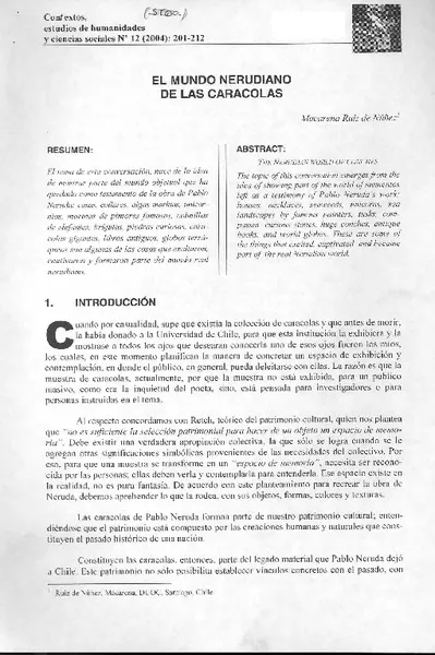 El mundo nerudiano de las caracolas [artículo]Macarena Ruiz de Núñez.