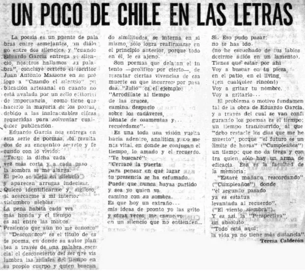Un poco de Chile en las letras [artículo] Teresa Calderón.
