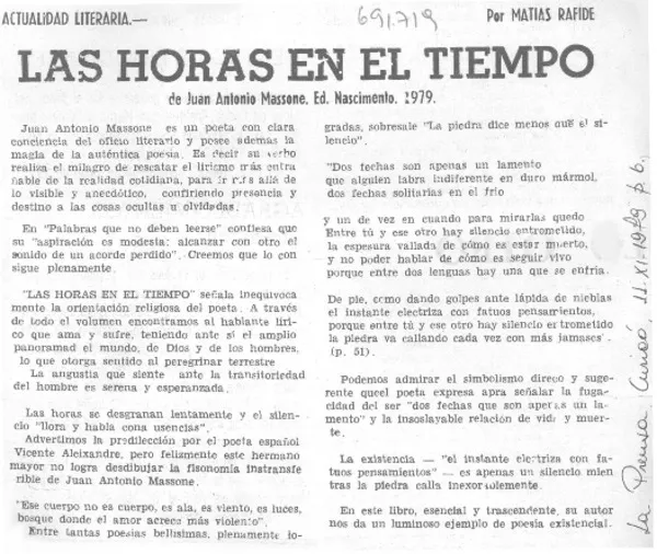 Las horas en el tiempo [artículo] Matías Rafide.