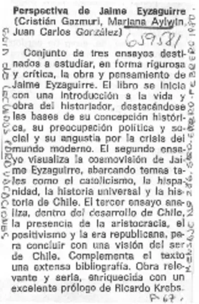 Perspectiva de Jaime Eyzaguirre. [artículo]