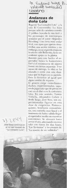 Andanzas de doña Lola [artículo] Yolanda Montecinos [y] M. Eugenia Me...