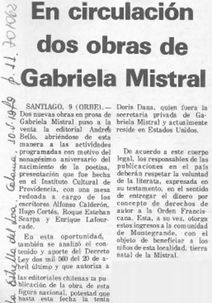 En circulación dos obras de Gabriela Mistral. [artículo]
