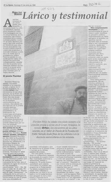 Lárico y testimonial [artículo] María Luz Moraga.