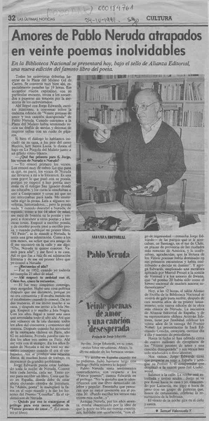 Amores de Pablo Neruda atrapados en veinte poemas inolvidables [artículo] Samuel Valenzuela Y.