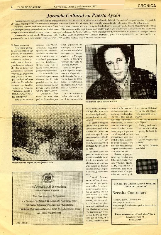 Jornada cultural en Puerto Aysén [artículo]. retr.
