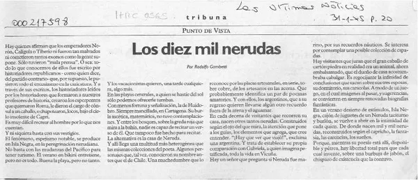 Los diez mil Nerudas [artículo] Rodolfo Gambetti.