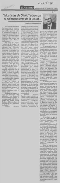 "injusticias de otoño" obra con el doloroso tema de la usura [artículo] Orlando Gutiérrez Salinas.