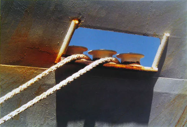 Obra rectangular, orientación horizontal. Imagen blanco y negro. Tres botes en la playa con remos apoyados en su interior. Hombres al fondo.