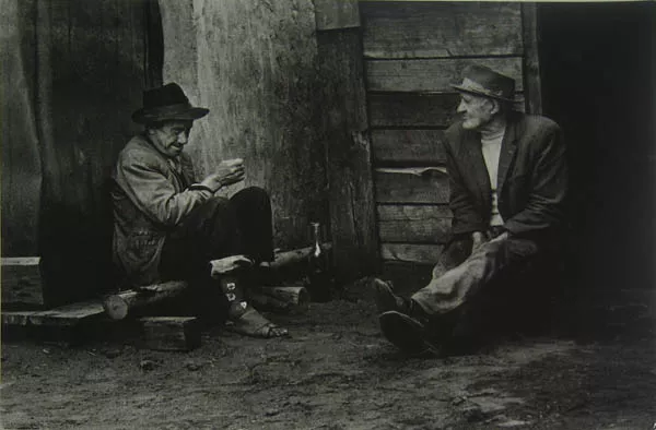 Obra rectangular, orientación vertical. Composición en base a dos figu...