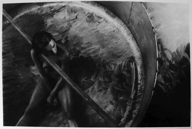 Obra rectangular, orientación horizontal. Imagen blanco y negro. Retra...