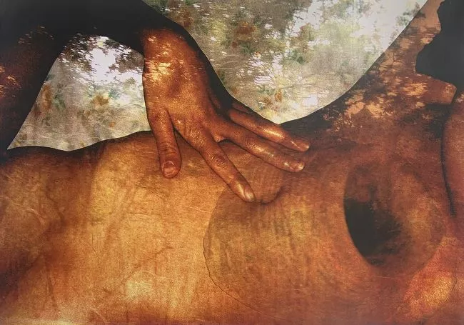 Obra de formato rectangular en orientación vertical. Fotografía en bla...