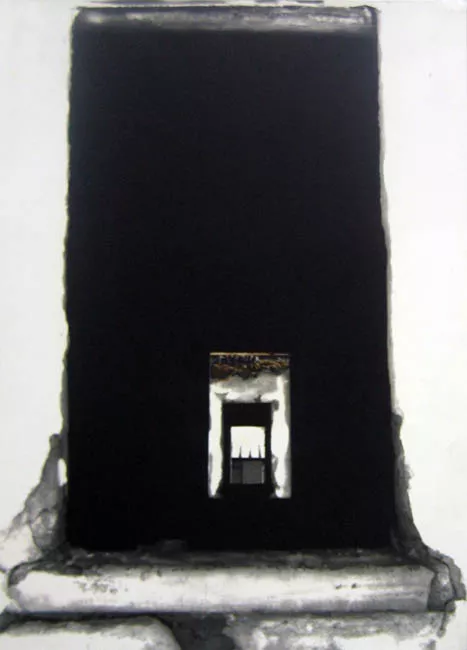 Obra rectangular, orientación vertical. Imagen blanco y negro. Composi...