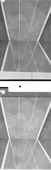 Fotografía en blanco y negro, de formato horizontal. Composición en base a díptico con dos copias idénticas de un mismo retrato de una figura femenina de busto. La mujer viste polera oscura, pañuelo claro al cuello y dirige la mirada al frente. En la segunda imagen se observa una intervención sobre el rostro y en el centro del pecho con un elemento de color rosado circular. El fondo es claro y la iluminación es frontal.