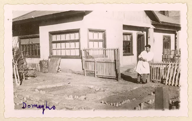 Positivo, monocromo, formato tarjeta postal, paisaje con parque y lagu...