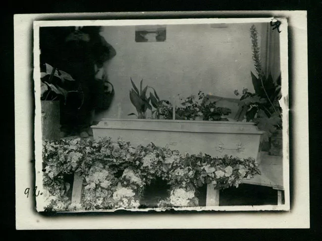 Calle Infante 407, ataúd (del niño Lorenzo E. Encina de 4 años)