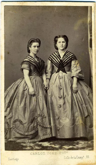 Retrato fotográfico montado sobre cartón de dos mujeres no identificad...