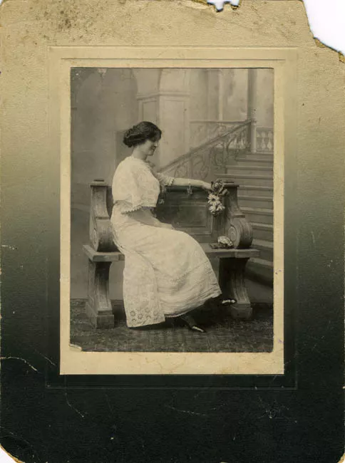 Retrato fotográfico de estudio montado sobre cartón, de mujer no ident...
