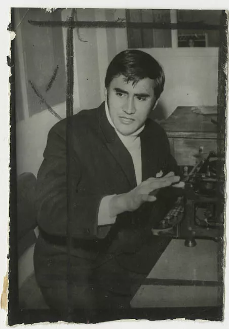 Fotografía rectangular, orientación vertical en blanco y negro de dos ...