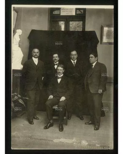 Formato rectangular. Sala con mobiliario de época, mesita central con ...
