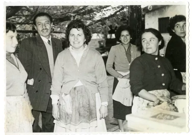 Fotografía blanco y negro de tres hombres en oficina, todos sentados. De derecha a izquierda de la imagen hombre viste pantalón y camisa clara. Al centro hombre de pantalón oscuro y camisa a rayas. En el hemisferio izquierdo de la imagen hombre de camisa gris y corbata oscura. Al fondo ventana con persianas. Rayas rojas en la parte superior.