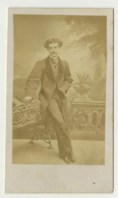 Retrato masculino de estudio con telón de fondo pintado. El retratado ...