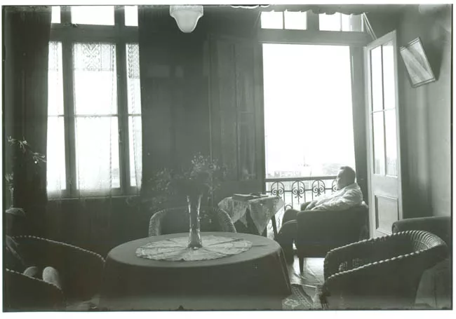 La imagen monocroma, de formato cuadrado, representa desde una vista s...