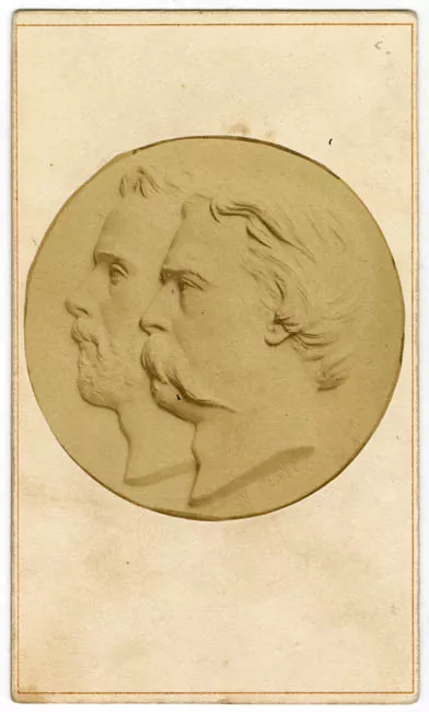 Fotografía circular en blanco y negro de dos perfiles de hombres talla...
